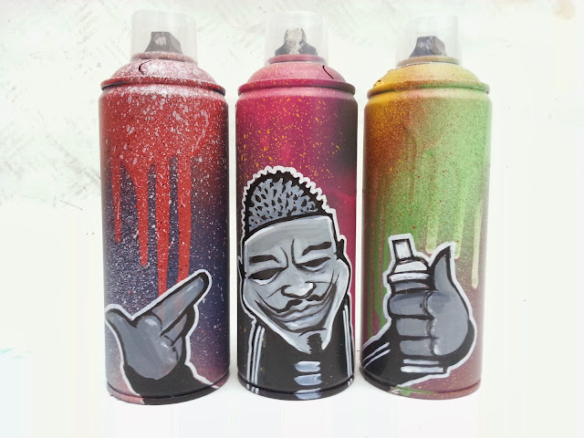 Always unique, hand painted custom spray cans are available to buy from my online stores. Here's the latest batch, added to my Ebay store..