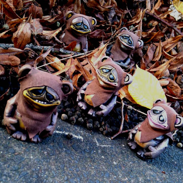 Nub Nubs! Standing a cute 3inches tall with shiny glossed eyes, Grizzlewoks are custom painted GrizzleChops pretending to be Ewoks..With little fabric hoods, each one has been hand painted in a different way so each piece is unique..